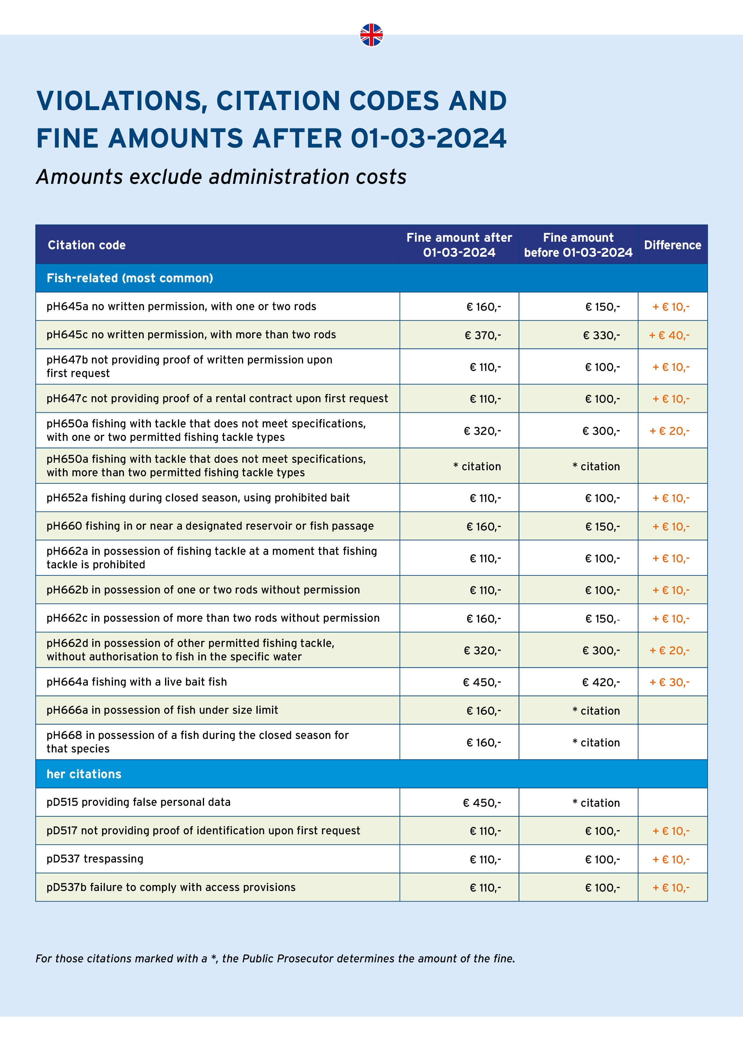 Prosecution Service has announced the fine amounts for 2024. The amounts relating to inland fishing, which includes anglers, are almost the same as last year. However, the penalty fees are not cheap, so make sure you avoid a fine when you’re fishing.